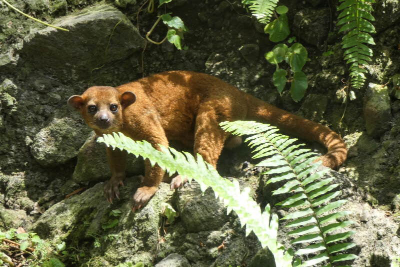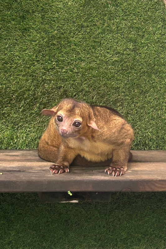 Au Zoo de Martinique, le kinkajou permet d’aborder le mode de vie des mammifères nocturnes et arboricoles.