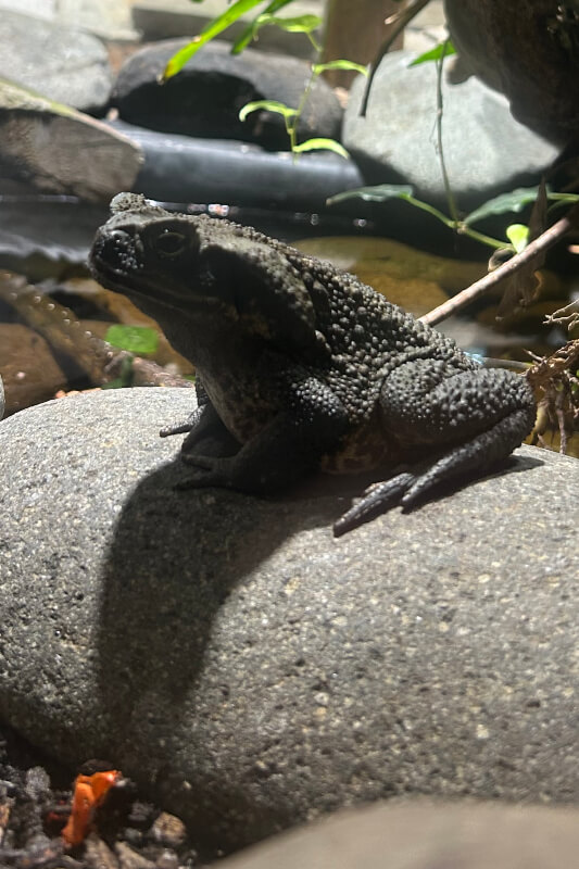 At the Martinique Zoo, the cane toad is not shown in captivity. However, its potential presence in the natural environment of the park makes it possible to evoke the fragile balances of ecosystems and the consequences of the introduction of non-native species.
