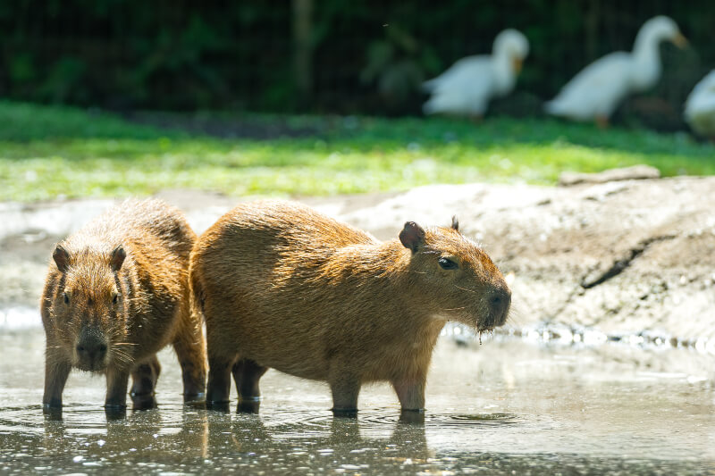 In 2025, the Martinique Zoo welcomed the birth of two young capybaras, twins named Yuca and Kalbass. These births were a highlight for the park teams. The two little ones evolve alongside their parents, Bulle and Belle, under the constant attention of the carers.
