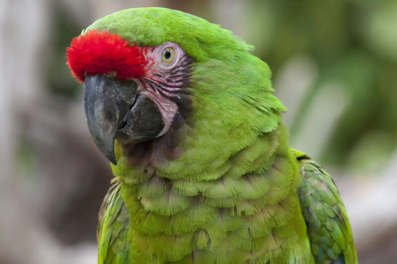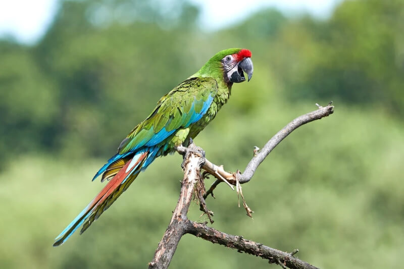 El guacamayo verde (Ara militaris) es uno de los grandes loros icónicos de América Latina. Es reconocible por su plumaje verde, con toques rojos en la frente y azules en las alas. Su pico grande y robusto se adapta perfectamente a la apertura de tuercas resistentes, como El guacamayo azul.