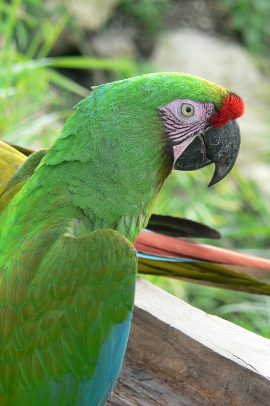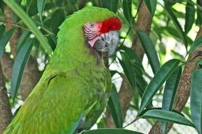 El guacamayo verde en el zoológico de Martinica